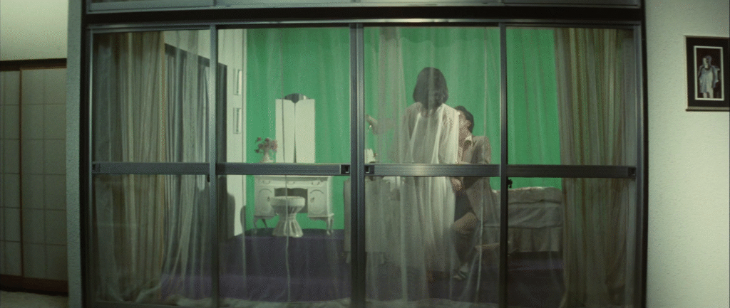 Era una casa japonesa elongada, y tenía paredes con las que era difícil trabajar. No podíamos deshacernos de las paredes, como podríamos haber hecho en un estudio. En locación, el espacio en el que se lleva a cabo la actuación es bastante limitado, lo cual es engañoso. No podíamos hacer travellings, entonces no los hicimos. Por eso la película terminó siendo bastante despareja.