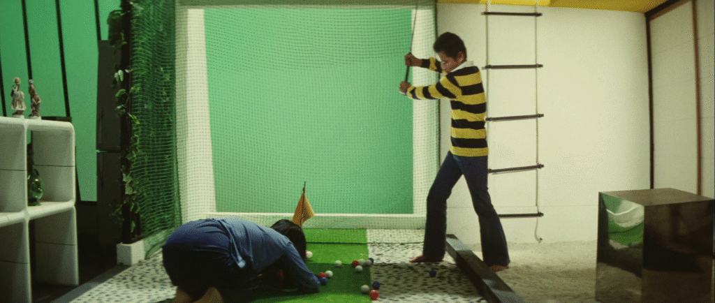 Hay sogas para escalar en la guardería de Hishū monogatari, y Keisuke Noro cuelga de una red. En realidad, una gran parte de la película transcurre en el “espacio”.