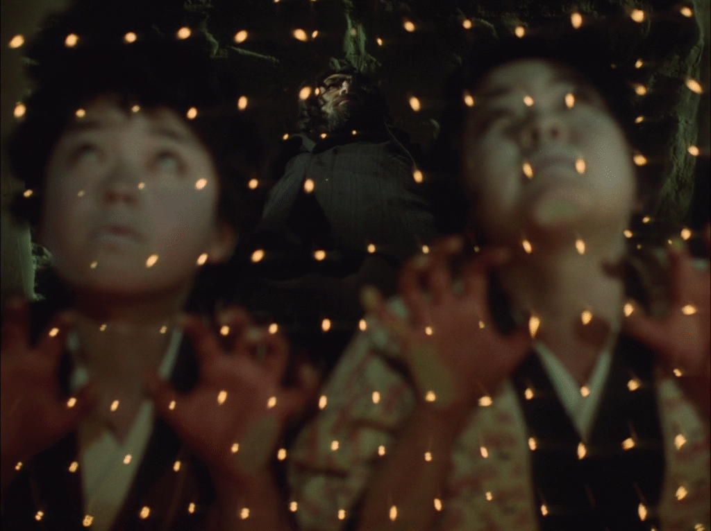 No, no todos, solo los primarios. En Zigeunerweisen, por ejemplo, usé mucho más celeste que en cualquier otra. Pero si decidís usar celeste, hay un riesgo de que tu camarógrafo no tenga suficiente luz. Tenés el mismo problema con las shoji [puertas corredizas hechas de papel de arroz opaco]. Los camarógrafos las detestan, entonces yo mismo tengo que prestarles atención. En Kagerō-za (1981), usé el azul como color principal. Esa fue idea de Kyōka [el escritor Kyōka Izumi, en cuya novela se basa la película]. En realidad, también quería hacer lluvia en Kagerō-za, pero no había suficiente plata, como de costumbre. Ajustamos los colores para los protagonistas.