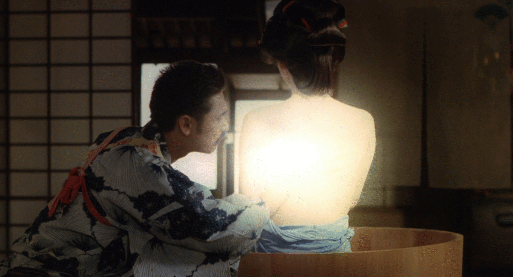En Irezumi ichidai [Tattooed Life, 1965], varias escenas fueron filmadas en contrapicado, incluso desde abajo de un tatami [piso japonés]. Esto genera un efecto muy particular y misterioso.
