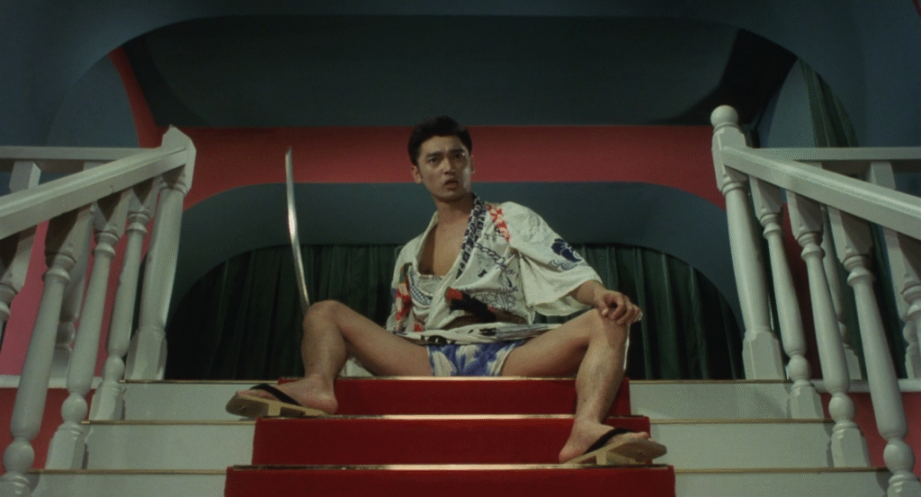 - Porno soft y romántico también producido en Nikkatsu. En los años 60, los estudios Shōchiku, Nikkatsu y Tdei comenzaron la producción de pinku eiga (películas rosa), y en unos años casi la mitad de las producciones fílmicas nacionales eran eróticas. Suzuki, mientras seguía la producción de variantes poco convencionales de las películas de explotación juvenil de Nikkatsu, hizo un pinku: Nikutai no mon. ↩︎