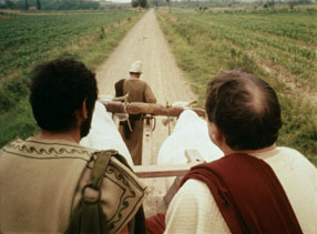 Son pocas sus películas italianas que hablan directamente del mundo moderno: se trata, por el contrario, de elocuentes péplums de teatro2, en que la Antigüedad es despetrificada una y otra vez, devuelta a la historia viviente.
