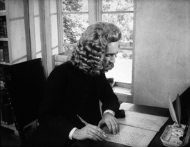 que es lamentado por la primera música de la película, un andante melancólico con flauta de Musikalisches Opfer de Bach, por Gustav Leonhardt, que nos recuerda al ciego Bach en su lecho de muerte mirando por la ventana, o a Ixión (cuyos ojos nunca vemos) contemplando una nube. “El artista no es más que un receptáculo de sensaciones, un cerebro, una máquina de registrar”.