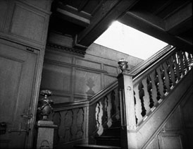 El pasillo de Bach se parece a su música: una fuga de diagonales que ascienden al cielo; él avanza por la habitación y sube las escaleras, mientras su hija, parecida a un ángel, se materializa a partir de la luz.