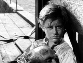 ¿Ventura triunfa a pesar de que fracasa? Al final del “texto” Le donne di Messina de Vittorini, la aldea comunal de Ventura se revela como nada más que una quimera. El final feliz de Operai es en sí mismo una quimera, fabricada por los Straub al detenerse en el medio de la novela y fusionar un comentario al pasar sobre la búsqueda de laurel con una celebración de un Nuevo Edén. La verdadera verdad es la humillación, tal y como se relata en Il ritorno del figlio prodigo/Umiliati (2003), una película tan lineal, implacable y burlona (incluso con patos graznando) que es difícil creer que sea una película que los Straub “quisieran” hacer o una humillación que alguien quisiera revivir. Las verdades tan amargas que hacen estallar la quimera de una comunidad comunista son realidades capitalistas proclamadas por un terrorista ex-fascista que es gemelo de Ventura, un zombi irónicamente modelado (?) en la figura de Cristo de Carl Theodor Dreyer, Johannes Borgen (Preben Lerdorff Rye), en Ordet (1955): la tierra es propiedad privada que están invadiendo (como en The Grapes of Wrath de John Steinbeck y Ford).