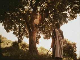 Al igual que Ford, los Straub coreografían dentro de la geometría: no se puede ilustrar aquí el contrapunto de los pasos de las hermanas mientras Antígona se aleja para llevar a cabo su desafío mortal, hacia la diagonal, el árbol, el horizonte; la tierra reclama su sacrificio.