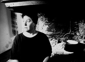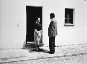 Así que el peregrino ahora tiene un nombre: Silvestro. Es el momento más reconfortante de Straub-Huillet, casi una escena sacada de How Green Was My Valley. Pero, al igual que en el tren, oscila entre emociones descontroladas e intentos de alejar las realidades jugando con ellas. Ve a su madre como se ve a sí mismo, como vio a “il Gran Lombardo” (“el Alto Lombardo”) en el tren: mitad en silueta, mitad en un mundo privado.