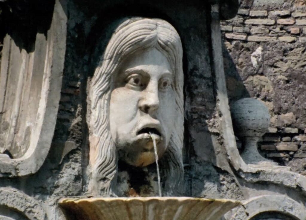 En Sicilia!, el peregrino (Gianni Buscarino) comienza su búsqueda sin sospechar que es un peregrino en busca de algo. No posee identidad ni objetivo. Es solo una silueta, un fantasma divorciado de lo que siente a su alrededor: los gritos del hombre que no puede vender sus naranjas y el interminable obbligato del agua (como la fuente de Othon).