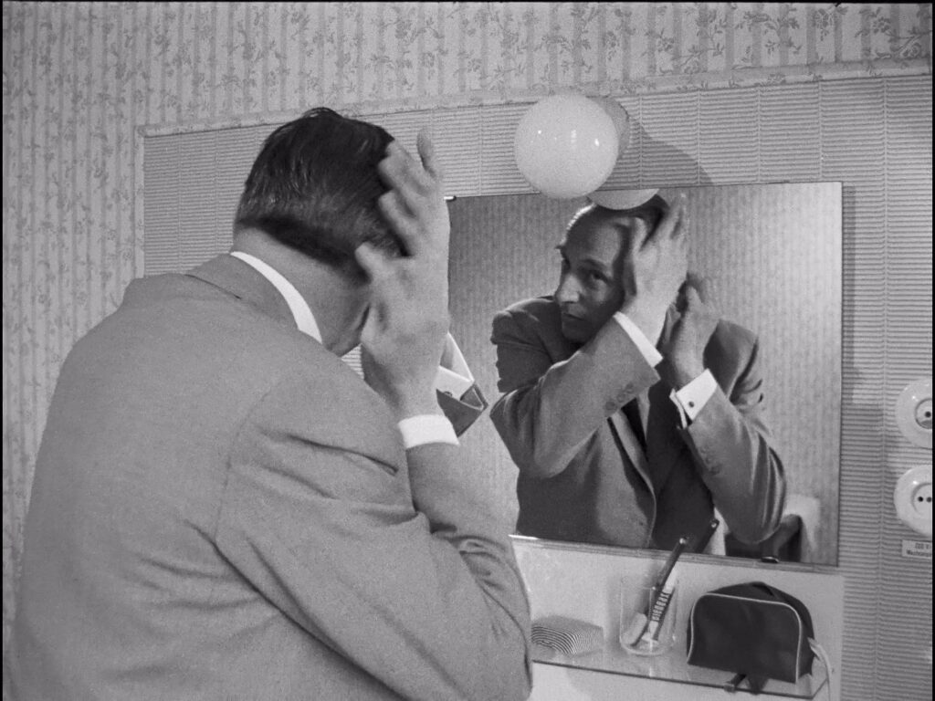 No tiene nombre y posa frente a la escena, no dentro de ella, ciego. En el tren es evasivo. “Ma che farete a Siracusa?” (“¿Pero qué vas a hacer en Siracusa?”) Ni siquiera sabe por qué vino a Sicilia. Para llenar el vacío, va a ver a su madre (Angela Nugara), a quien no vio en 15 años.