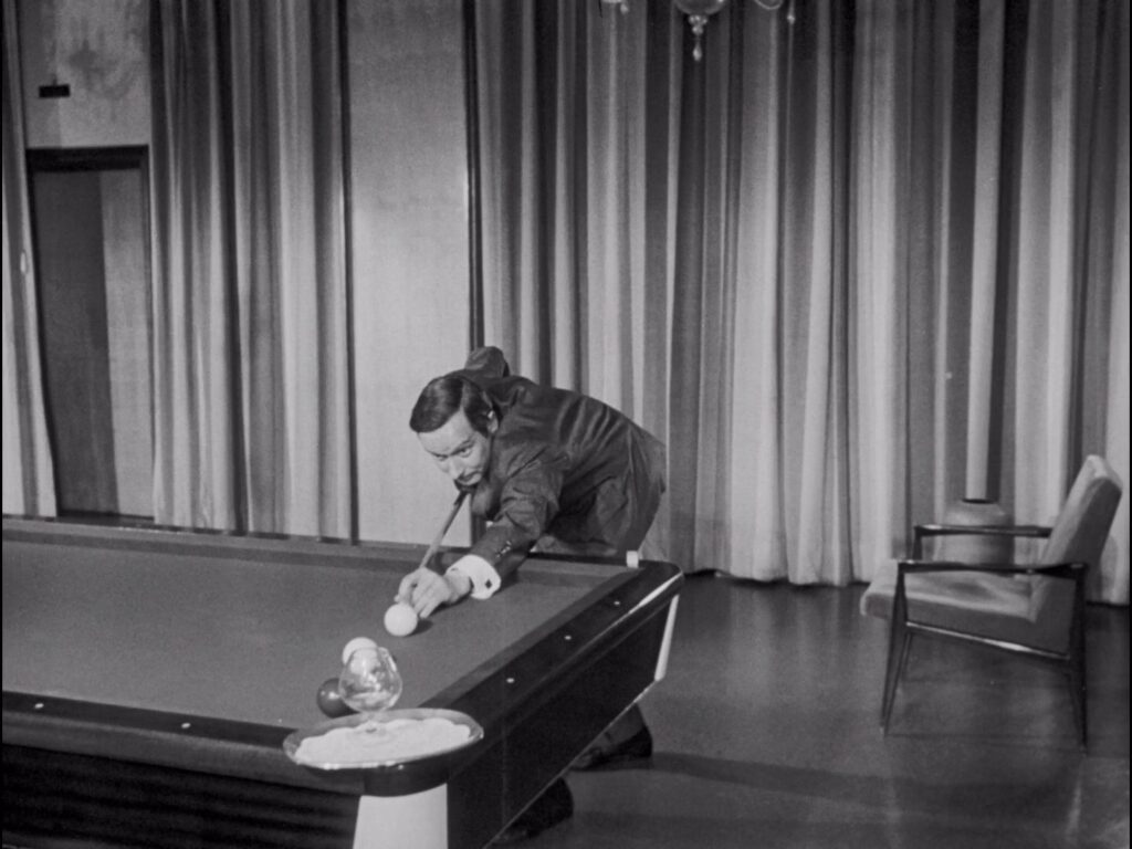 Sin embargo el núcleo —tan discretamente presentado— engendra una variación que dura más de un tercio de la película. El plano de variación reenvía la imagen de nuestro núcleo original, desarrollando una situación similar y anticipando un desenlace inversamente simétrico al que tendrá, pero los roles están “desplazados”. Esta imagen sería falsa y, por lo tanto, engañosa si el teatro que otorga aquí a la ficción un segundo grado, reforzándola incluso con detalles realistas, no se confundiera con la duración y el espacio del plano que, registrando fielmente espacio y duración teatrales, se libera de todo simbolismo. O esta imagen se encuentra igualmente amplificada gracias a su insólita duración. He aquí que esta realidad (el plano 4, núcleo de la película), lejos de proponer cualquier profundidad o riqueza, a la que haría alusión, confirmando al espectador en su ideología y en el deseo que tendría de reducirlo todo a ella, se vacía, por el contrario, de todo lo que no es un signo, con el fin de permitir la combinación de espacios inéditos que no refieren a ninguna otra realidad más que a ella misma, la tangible y relativa realidad del plano 4.