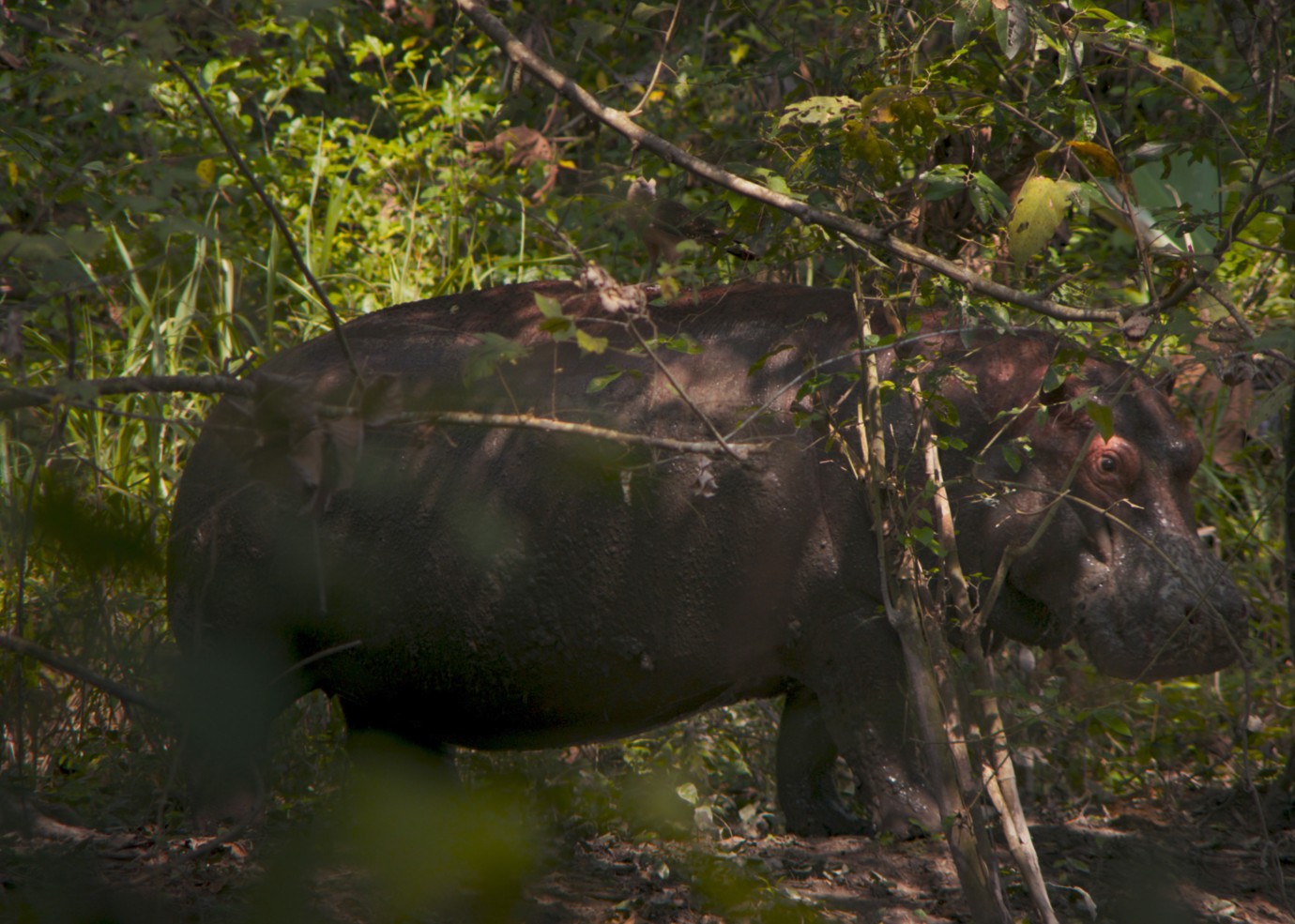 Con todo, Pepe logra algunos breves momentos de excepción. La tarde cae sobre el Río Magdalena y la cámara observa a un grupo de hipopótamos en el agua. A diferencia de lo que sucede en otras escenas, acá la toma no se hace desde arriba, sino de frente a los animales, en un mayor pie de igualdad. De frente, el hipopótamo abre la boca, pero no sale casi ningún sonido (¡con lo que hablaban en las escenas anteriores!). Después, el animal advierte la presencia de la cámara y le devuelve la mirada. Sus ojos parecen los de un caracol, separados, diminutos, pero en el instante en que capturan el lente, se ve en ellos ese mismo pasillo que se abría en los ojos de Balthazar: un misterio sobre el que los humanos podemos sólo sospechar; sospechar, por ejemplo, que por ahí se ve el tiempo, la historia, la violencia ejercida sobre los animales… pero quién sabe. Lo que sí podemos saber es que cuando el animal nos mira, ya no nos quedamos tranquilos, las cosas cambian de lugar. Es que los animales siempre son observados, y rara vez se nos ocurre que ellos puedan observarnos también a nosotros. Así, algo empieza a equilibrarse entre los dos: un otro, que vive y muere como nosotros, nos desafía desde su existencia1.